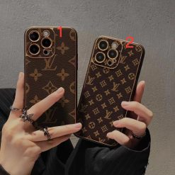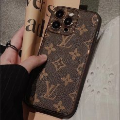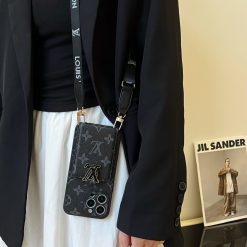 Louis Vuitton iPhone 17 Air / 16 Plus / 15 Pro Max Leather Wallet Case with Card Holder & Long Strap