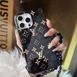 Louis Vuitton iPhone 17 Air / 16 Plus / 15 Pro Max Leather Wallet Case with Card Holder & Long Strap