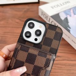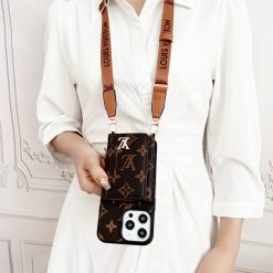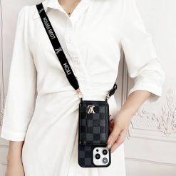 Louis Vuitton Case For iPhone 16 15 14 Pro Max LV Leather Phone Pouch Bag With Card Holder and Strap