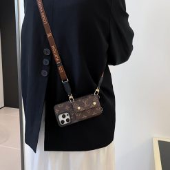 Louis Vuitton iPhone 17 Air / 16 Plus / 15 Pro Max Leather Wallet Case with Card Holder & Long Strap